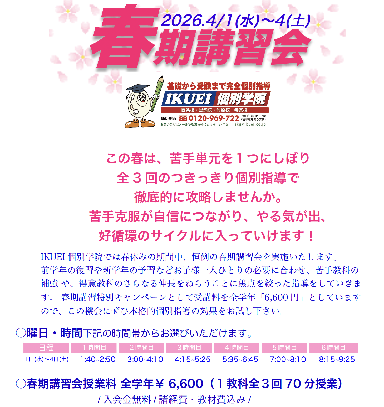 IKUEI個別学院では将来につながる確かな学力をつけるために